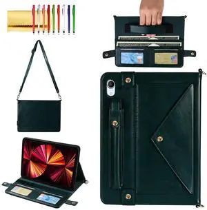 Handbag Case for iPad Mini 2024/2021 8.3", Techcircle Folio Stand PU Leather Crossbody iPad Mini 6/Mini 7 Cover with Pencil Holder+Card Slots Wallet Case with Shoulder Strap+Hand Strap, Midnight Green
