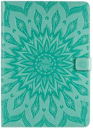 Folio Case for New iPad 9th Generation, iPad 7th/8th Gen Case, Techcircle Sunflower Embossed PU Leather Stand Smart Protective Wallet Cover with Card Slots & Money Holder, Auto Wake/Sleep, Green