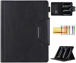 Folio Case for iPad Pro 11-inch (M4) 2024 (5th Gen), Techcircle Anti-Slip Stand PU Leather Soft TPU Back Magnetic Smart Cover with Pencil Holder + Card Slots + Front Pocket, Auto Sleep/Wake, Black
