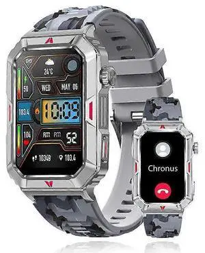 Ecocleanpath Smart Watch for Men 1.57'' Square Screen, Bluetooth Calls, 20-Day Battery, Camouflage Gray