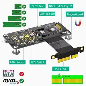 M.2 nvme SSD to PCIE X4 Extension Cable With fan extension cable 0.05M