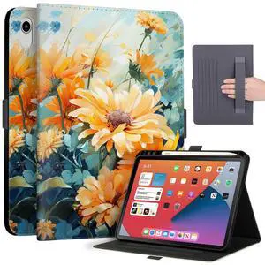 Anpredo Case for 10.9 Inch iPad 10th Gen with Pencil Holder, Smart Cover with Hand Strap, Foldable Stand, Cases for iPad 10 2022 Release, Chrysanthemum