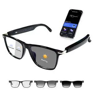 4-in-1 AI Smart Glasses, 800W HD Camera Glasses, 1080P Video Recording Glasses, Built-in ChatGPT AI Voice Assistant, Real-time Translation, Open Ear Headphones for Outdoors, Driving & Vlogging