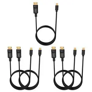 Mini DisplayPort to DP Cable, 6 Feet, 5 Pack, Gold-Plated - 4K@60Hz, 2K@144Hz - Black