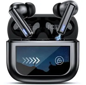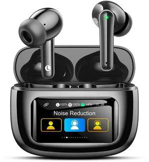 JAYSUING Wireless Earbuds Bluetooth 5.4 Headphones, Touch Screen, Active Noise Cancelling, USB Charging Case for iPhone/Android