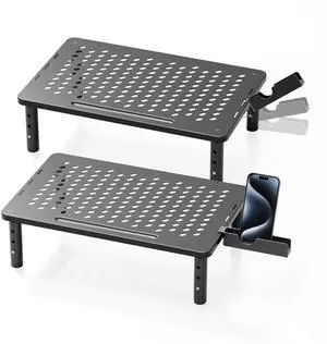 Dual Monitor Stand Riser, Wood and Steel Multi-Purpose Desktop Storage Stand for 2 Monitors for Computer, Laptop, Printer, TV, Rustic Brown- Brand: Poly