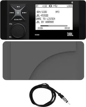 JBL 4" LCD Display Bluetooth Marine Yacht AM/FM AUX/USB Digital Media Stereo Receiver with Protective Stereo Cover, 22" Wired Radio Antenna