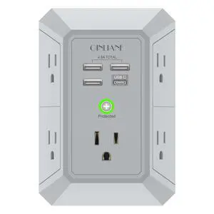 USB Wall Charger, Surge Protector, 5 Outlet Extender with 4 USB Charging Ports (4.8A Total) 3-Sided 1680J Power Strip Multi Plug Outlets Wall Adapter Spaced for Home Travel Office(3U1C),Grey