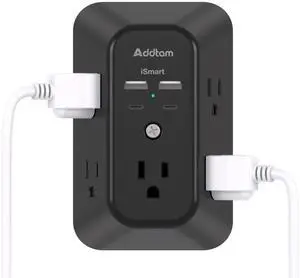 Surge Protector Outlet Extender - 5-Outlet Splitter with 4 USB Wall Charger(2 USB-C Ports), Multi Plug Outlet Power Strip for Home, Dorm Room Essentials, Black