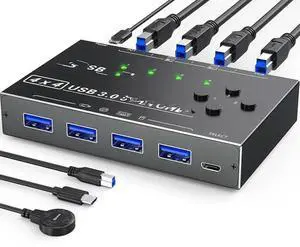 USB Switch,USB 3.0 Switch, 2 Computers Sharing 4 Devices, Aluminum Switcher for Mouse, Keyboard, Printer, Scanner, Flash Drive, Compatible with Windows, Mac, Linux, Chrome OS