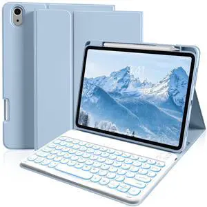kenke for iPad 11/10th Gen Case with Keyboard 11/10.9 inch 2025 A16/2022, Detachable Wireless Bluetooth Keyboard Case with Right Side Pencil Holder, Backlit White Round Keycaps (Blue