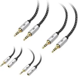 Premium 3.5mm Jack Male to Female AUX Audio Extension Cable TRRS 4 Poles for Headphones with Mic Speakers - 6ft