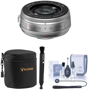 Fujifilm XF 23mm f/2.8 R WR Lens, Silver WITH ADORAMA SLINGER SOFT LENS CASE SMALL 5", PRO OPTIC CLEANING KI, PRO OPTIC LENSPEN LENS CLEANER, AND PRO OPTIC UNIVERSAL LENS CAP TETHER