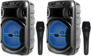 Technical Pro (Pack of 2) 8 Inch Portable 500 W Bluetooth Speaker,w/Woofer & Tweeter and Professional Portable Microphone with Digital Processing, XLR to 1/4", Black Karaoke DJ Wired Microphone