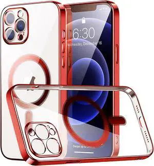 MagSafe Compatible Electroplated Transparent TPU Case for iPhone 14 Pro - Red