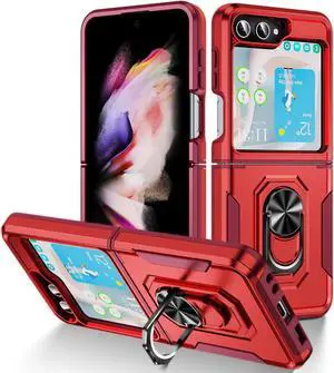 TUFF Shockproof Hybrid Armor Case with Ring Grip for Samsung Galaxy Z Flip 5 - Red