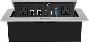 Table Pop up Power Date Center Connection Box with Outlet Network HDMI for Conference desk - Silver
