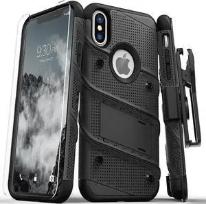 Zizo BOLT Series compatible with iPhone X Case Military Grade Drop Tested with Screen Protector, Kickstand and Holster iPhone XS BLACK