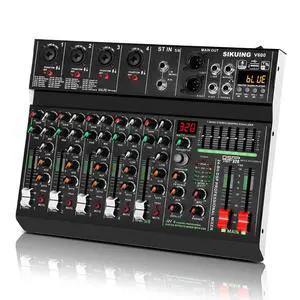 6 channel professional portable mixer, 320 DSP effects + 48V phantom power, Bluetooth sound card + 7-Band Eq Output, for PC recording, karaoke studio effects, and streaming playback- Brand: SIKUING