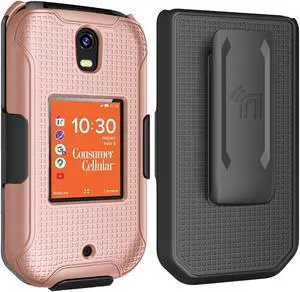 Hard Case and Belt Clip Holder for Consumer Cellular Iris Flip Phone - Rose Gold