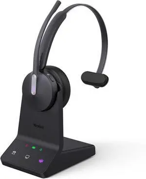 Yealink WH62 DECT Mono Teams Wireless Headset, 525 ft Range Work Headphone with 2X Noise Canceling Mic for IP Phone and Computer, Single Ear Headset with Call Control, Ringer,13H Talk Time