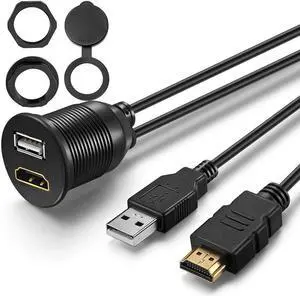 1 Meter 3ft USB and HDMI-compatible Extension Flush, Dash, Panel Mount Cable, for Car, Boat, Motorcycle
