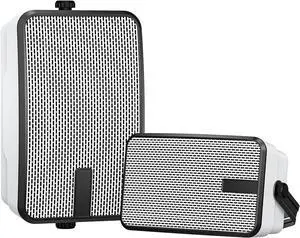 5.25 Inch Outdoor Bluetooth Speakers, Wall Mount, Powerful Bass, Weather Resistant, Built in Amplifier, 8 Ohm, AUX/FM/USB, for Patio, Yard, Deck, Garage or Garden, Pair, Black