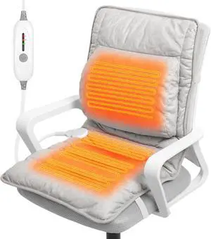 Heated Seat Cushion for Office Chair with Lumbar Support, Extra Large Heated Chair Pad for Pain Relief, Auto Shut Off, 3 Heating Levels, Chair Warmer for Full Back, Waist, Hip, Thigh, Home Use, Grey