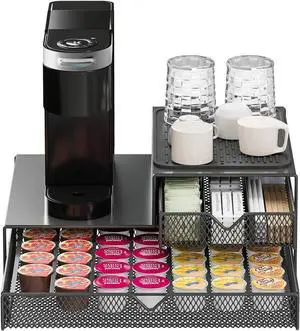 K Cup Organizer for Countertop - Solid Metal 60 Coffee Pod Holder Storage Drawer, Reinforced Steel Stand Compatible with Keurig K-Cup Pods, Anti-Vibration & No-Sag Design, No Assembly Required (Black)