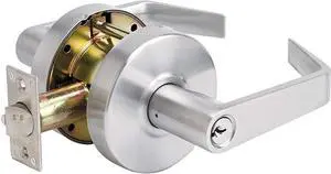 Keyed Entry Door Lock, Brushed Chrome Finish Commercial Door Handle, Interior or Exterior Lever Style Locking Door Handle, SLCHKE26D