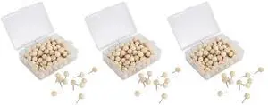 390Pcs Round Wood Decorative Push Pins, Wood Head And Steel Needle Point Thumb Tacks For Photos, Maps And Cork Boards