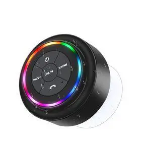 Bluetooth Shower Speaker, Portable Bluetooth Speakers, IP67 Waterproof Wireless Speaker with LED Light, Floating, 2000mAh, True Wireless Stereo for Kayak, Beach, Gifts for unisex -Black