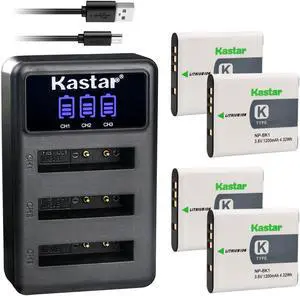 Kastar 4 Pack Battery and LCD Triple USB Charger Compatible with Sony NP-BK1 NP-FK1 K Type Battery, Sony BC-CSK Charger, Sony Cyber-shot DSC-W180, Cyber-shot DSC-W190, Cyber-shot DSC-W370 Camera