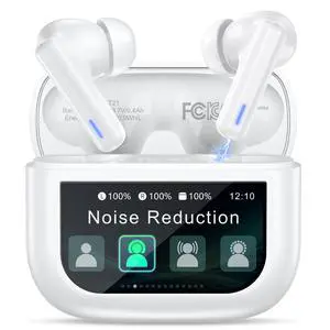 JAYSUING Wireless Earbuds Bluetooth Headphones, ANC/ENC Noise Cancelling, Ear Buds with Multifuntional Touch Screen, 40H Stereo Sound for Sports, IPX7 Clear Calls, 5 EQ for iOS Android (White)