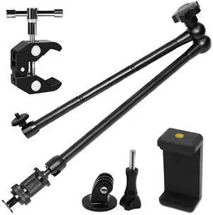 20" Magic Arm Clamp Kit with 1/4" & 3/8" Thread Clamp,Adjustable Friction arm- Articulating arm,with/Phone Clip/Tripod Mount Adapter,for Action Camera/DSLR/LCD Monitor/LED Lights/Cell Phone