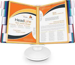 10-Pocket Desktop Reference & Display System with 360° Adjustable Base, Fast Flip & Find Desk Reference Organizer, A4/Letter Size 10 Double-Sided Panels with 5-Color Borders & Index Tabs, White