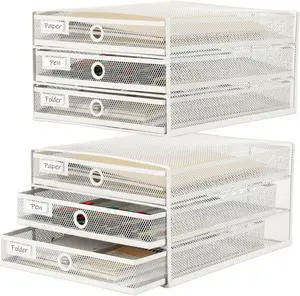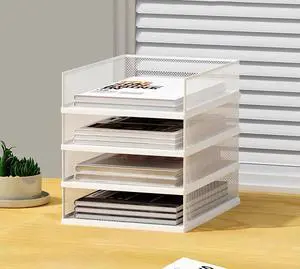 10 Tier Paper Organizer - Letter Tray Mesh Desk File Organizer with Handles for Office School Desktop, Black 2 Pack