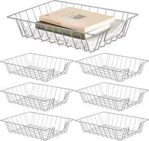 6 Pcs Letter Tray Wire Paper Trays Stackable File Desk Organizer Metal File Paper Holder Basket for Desk Desktop Letter Storage for Office Home Classroom School(14'' x 10'' x 3'',Silver)