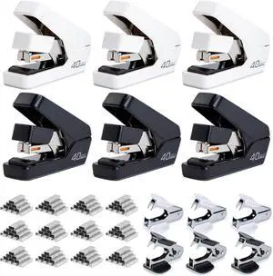 Stapler, Effortless Staplers for Desk, 40 Sheet Capacity Heavy Duty, One Touch, No Effort, Easy to Load, with 2000 Staples & Staple Remover, 6 Pack, Black&White