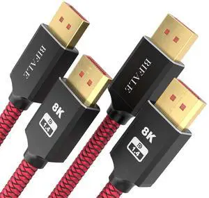 Certified 8K DisplayPort 1.4 Cable 25ft 2Pack, DP 1.4 Cable Nylon Braided Supports (8K@60Hz, 4K@144Hz and 1080P@240Hz), HBR3, 32.4Gbps, HDCP 2.2, DSC1.2 for Laptop Gaming Monitor