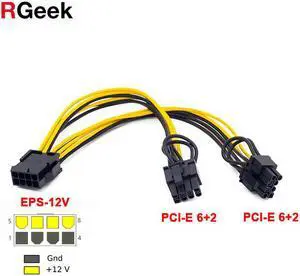 EPS CPU 12V 8 Pin to Dual 8 (6+2) Pin PCIE Adapter Power Supply Cable