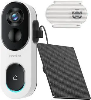 2K Doorbell Camera Wireless with Solar Panel, Nonstop Power Video Doorbell with Head-to-Toe View, No Monthly Fee, 2-Way Audio, Human Detection, 5200mAh Battery, 2.4Ghz WiFi