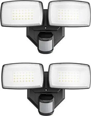 32W 2 Head Motion Sensor Outdoor Lights, 3200LM 6500K Hardwired LED Security Light, Dusk to Dawn, Motion Detector Light for Outside, 2 Pack IP65 Waterproof Flood Lights for Garage, Yard(Black)