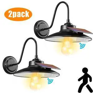 2 Pack Outdoor Solar Power Barn Light Motion Sensor Wall Light Exterior Fixture