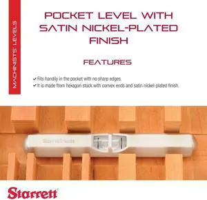 Pocket Level with Main Vial - Ideal for Machine Shop and Tool Room Use - 2-1/2" Length, Satin Nickel-Plated Finish, Hexagon Stock with Convex Ends - 135A
