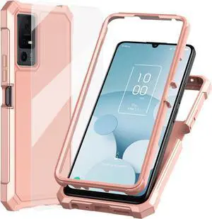 for TCL 40T Case Lively Jitterbug Smart 4 Case with Screen Protector Dual Layer Protection Shockproof Corner TPU Bumper Heavy Duty Silicone Phone Cover for TCL 505/TCL 40XL-Rose Gold