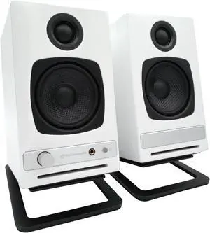 Audioengine A2 HD White Bluetooth Desktop Speakers and DS1M Metal Stands