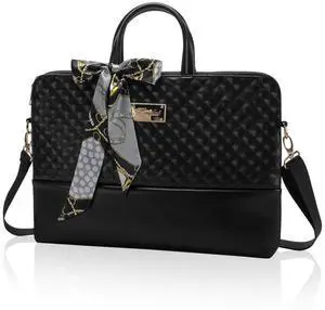 Laptop Bag for Women 15.6-Inch Carrying - Computer Bag Laptop Case Shoulder Slim Work Travel PU Leather (Black)