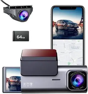 4K+1080P Dual Dash Cam Front and Rear, 64GB Card Included, 3.16 Touch Screen, Night Vision, 170Wide Angle, WDR