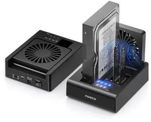 Hard Drive Docking Station, Pcie NVMe Adapter with Cooling Fan Superior Cooling Efficiency, External Hard Drive Reader Compatible with M.2 NVMe/SATA SSD & 2.5" and 3.5" SATA HDD SSD